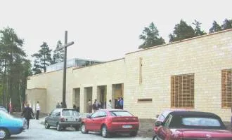 I 1994 begynte de første sonderinger med sikte på å finne eget hus eller tomt, og i 1997 tilbød kommunen å selge en tomt på vel 4 da i et boligområdet på sørsiden av byen. De to unge arkitektene Ervin Strandskogen (hovedansvarlig) og Henrik Hille ble engasjert, og deres prosjekt ble byggemeldt i 2000. Byggingen begynte i slutten av juni 2000 og tok nøyaktig ett år. Komplekset består av to separate bygninger bundet sammen av et atrium og fremstår utad som en enhet. Bebygd areal er brutto ca 700 m². I nord ligger kirken på 220 m² og i sør ligger menighetslokalet, som med blant annet kjøkken og møterom er på i alt 210 m². Over en del av dette arealet er det plassert en presteleilighet på vel 40 m². Det mellomliggende atriet er delvis overbygd og er på 150 m² (alt nettoarealer).