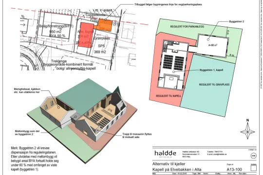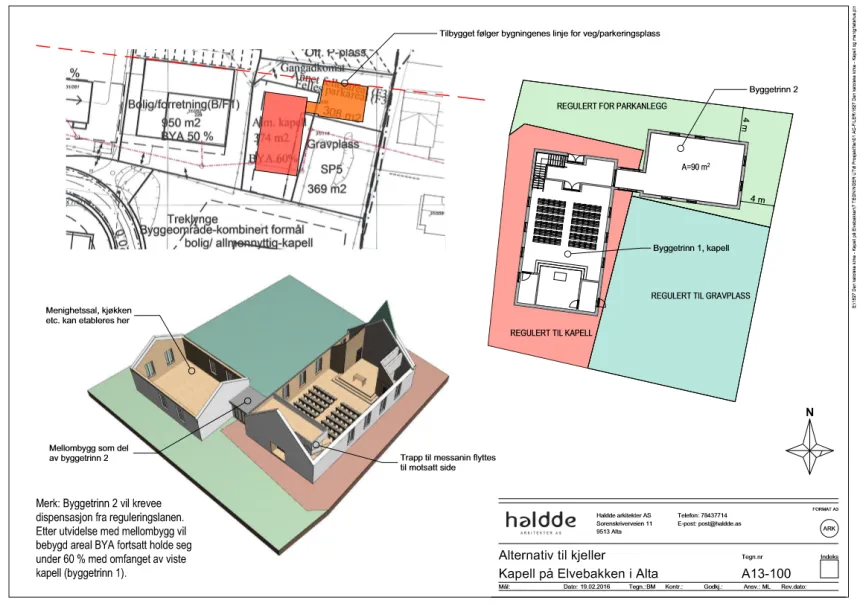 Bilde: Skisse av prosjektet i Alta, menighetshuset er tenkt som et senere byggetrinn.