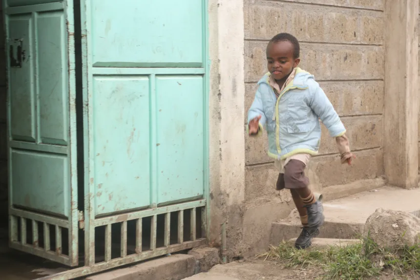 Brian bawiący się przy swoim domu rodzinnym w Nairobii. (Foto: Philip Laubner /CRS)