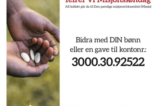 Søndag 22. oktober feirer vi Misjonssøndag. All kollekt som samles inn går da til Den pavelige misjonsvirksomhet (Missio).