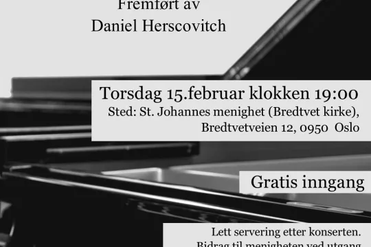 Velkommen til Bach-konsert med Daniel Herscovitch i St. Johannes apostel og evangelist menighet i Oslo, torsdag 15. februar kl. 19.00.