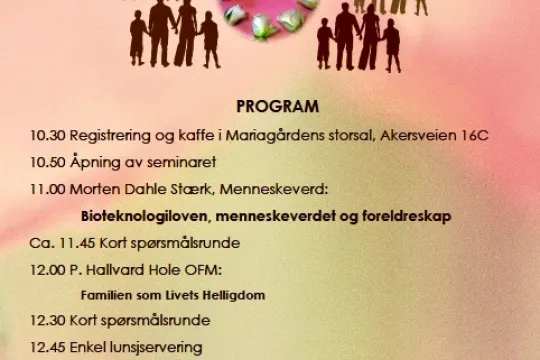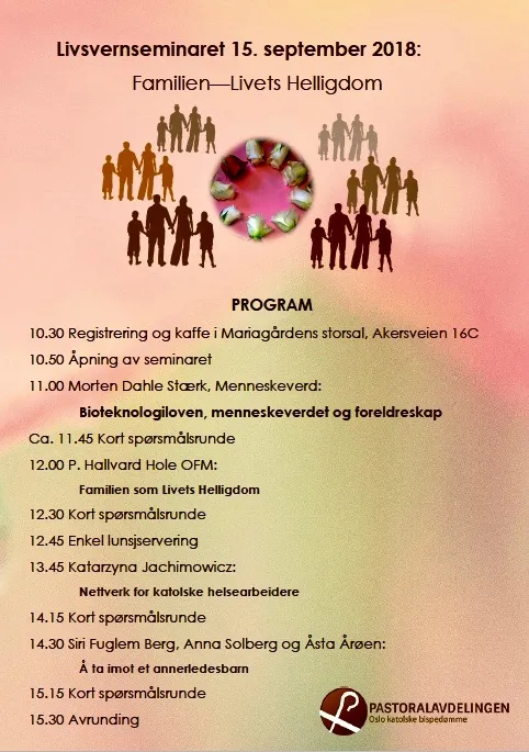 Videre vil man høre fransiskanerpater Hallvard Hole med tema «Familien som Livets Helligdom».