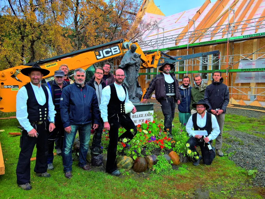 FRIVILLIG ARBEID: Erich Bundschuh Zimmerei fra Sør-Tyskland med støtte av syv frivillige bayerske håndverker reiste kirken.