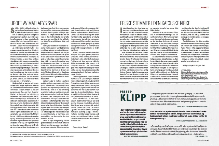 Under finner du Ewa og Roger Bivands kommentar til intervjuet med prof. Janne Haaland Matlary i St. Olav kirkeblad 4-2018. Deretter følger Matlary tilsvar.