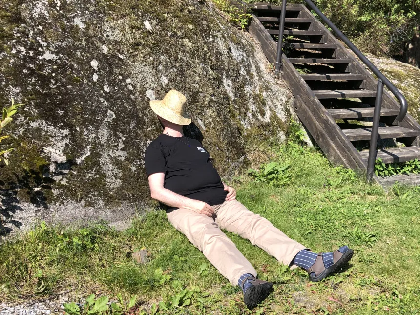 Når morgenimpulsen er ferdig, trekker alle ut til det strålende sommerværet. – Vi passer alltid på å bestille godt sommervær, og vår Herre hører oss, sier Nikoline. Det neste på programmet begynner ikke før kl. 16, så i mellomtiden kan deltagerne gå på tur, bade, spille krokket, lese, prate og slappe av. Jeg sirkler rundt for å hilse på.