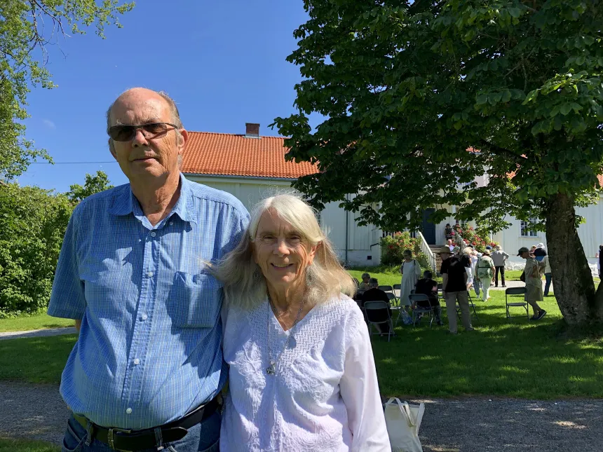 Jeg hører noen snakke engelsk, og snur meg og får øye på ekteparet Kristensen. – Min mann og jeg kommer til Norge hvert år for å være med på NEK-leir, sier Catherine til meg, på temmelig flytende norsk. – Vi bor egentlig i Florida, men det er så varmt der om sommeren at vi drar til Norge for å besøke familie – og være med på leir. Mannen min er fra Skien, og jeg fra England. Vi har tidligere bodd noen år i Norge.