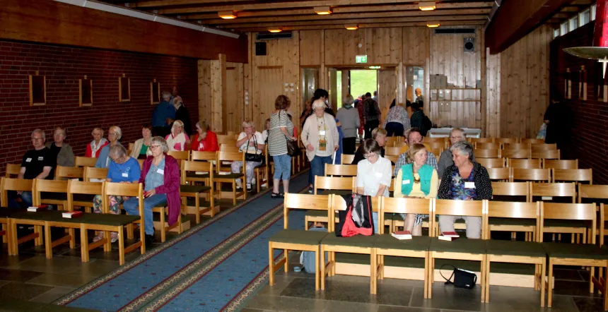 Jeg setter kursen mot hovedbygningen, åpner døren og trer inn til en munter, men noe høylytt atmosfære. I fire dager er det Norges eldre katolikker (NEK) som har tatt over den lille katolske perlen litt utenfor Spydeberg.