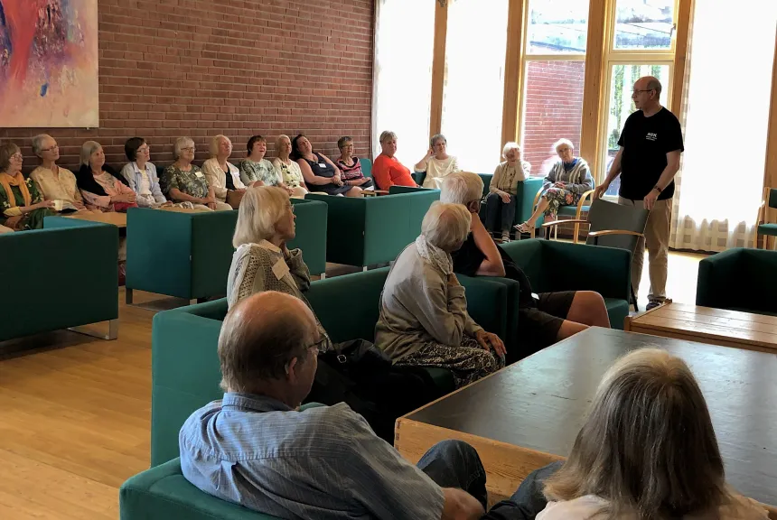 – Idag har vi foredrag om middelaldermunkene på Hovedøya presentert av Karl Gervin, og imorgen skal vi besøke gamle Spydeberg prestegård. I forbindelse med fem-årsjubileet spanderer komiteen en bedre lunsj iløpet av utflukten.