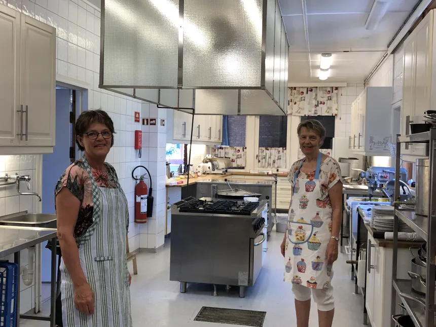 – I fjor ble det kjøpt inn lystette gardiner, og i år flyttbare benker. Det selges NEK T-skjorter og inntektene går til forbedringer, forklarer Anne-Mette videre. – Heisen tilpasset rullestol, ble kjøpt inn med inntektene fra et lotteri vi hadde ute i menighetene, skyter Ewa Bivand inn.