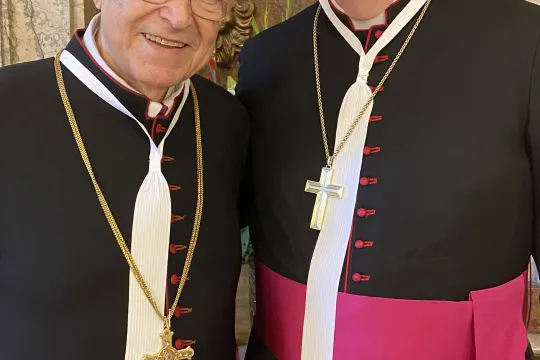 Fredag 28. august markerte biskop Bernt I. Eidsvig av Oslo (t.h.) sitt 25-årsjubileum for Evige løfter hos augustinerkorherrene (Can.Reg.) i Klosterneuburg. Her sammen med abbed Bernhard Backovsky, som feiret sitt 55-årsjubileum.