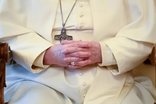 BE MED PAVE FRANS: Pave Frans oppfordrer alle til å be om Marias forbønn i mai. Foto: Vatican Media / Reuters / NTB