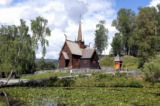 RØTTER TIL HELLIG OLAV: Den første kirken på Garmo skal være bygget omkring 1021. Olav Haraldsson (Hellig Olav) dro da på kristningsferd gjennom Gudbrandsdalen, og Torgeir Gamle fikk som takk for at han bygde kirke på garden sin fiskeretten i vannet Tesse av kongen. 30. juli1921 ble den den rekonstruerte Garmo stavkirke gjenåpnet på Maihaugen. Besøker du Maihaugen, stikk også innom Sigrid Undsets hjem Bjerkebæk og Bjørnstjerne Bjørnsons Aulestad. FOTO: NTB, Marianne Løvland