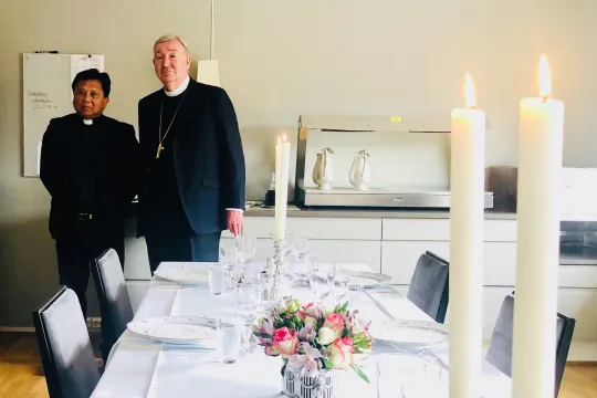 70-ÅRSLUNCH: På generalvikar i Oslo katolske bispedømme mgr. Francis Xavier Huynh Tan Hais 70-årsdag 6. juli 2021 inviterte biskop Bernt I. Eidsvig til festlunch i Akersveien 5. Foto: Petter T. Stocke-Nicolaisen