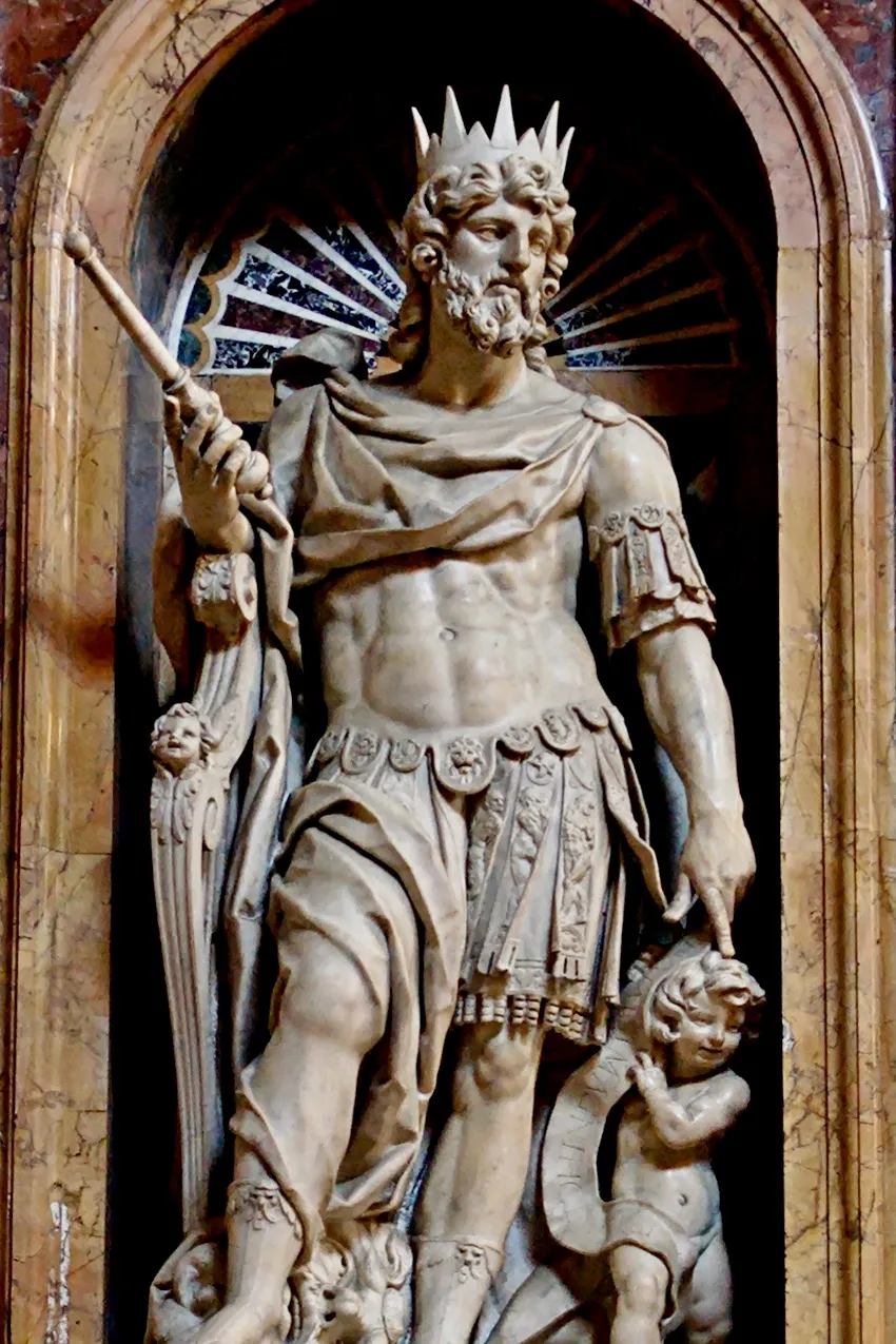 STAMFAR:Statue av kong David utført av den franske skulptør Nicolas Cordier for Borghese-kapellet i Basilica di Santa Maria Maggiore, Roma. Foto: Wikimedia