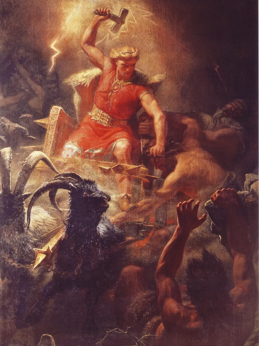 NAZI-NISSE?Ville nazistene at Tor med hammeren skulle erstatte nissen? Maleriet «Tors strid med jättarna» (1872) av Mårten Eskil Winge. Foto: Wikimedia
