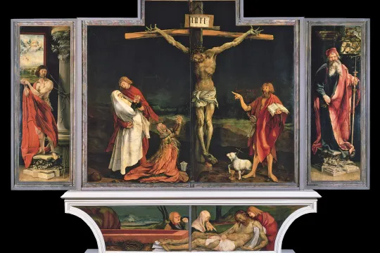 FREMPEK: Isenheim-altertavlen er en altertavle skulptert og malt av henholdsvis Nikolaus av Haguenau og Matthias Grünewald i 1512-1516. Den er utstilt på Unterlinden-museet i Colmar i Alsace i Frankrike. Det er Grünewalds største verk og regnes som hans mesterverk. Foto: Wikimedia
