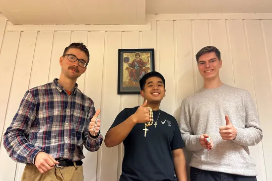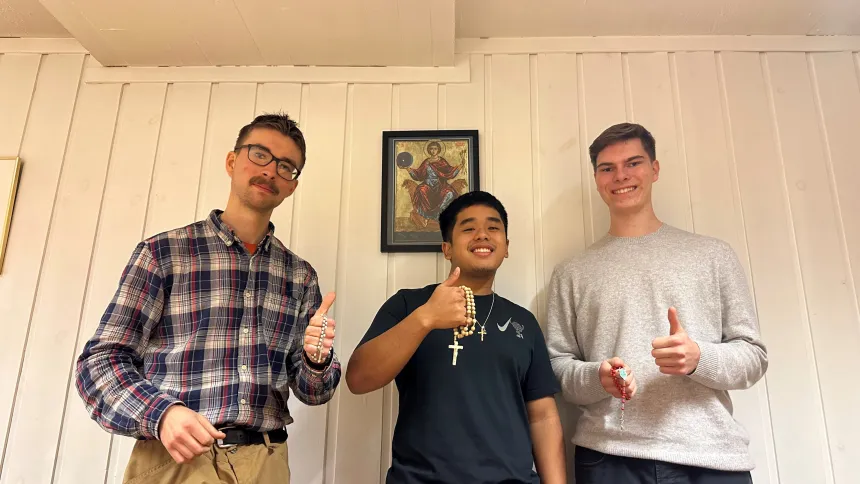 En fredagskveld hver måned møtes en gruppe unge menn for å be rosenkransen, snakke sammen og dele erfaringer. De kaller seg Rosenkransbrødrene, er mellom 18 og 25 år og er tilknyttet St. Hallvard menighet i Oslo. Vi har møtt tre av dem; Mathias Mauseth (17) som går på videregående, Magnus Eng (22) som studerer biologi og Dichino Nguyen (20) som studerer digital økonomi og ledelse.