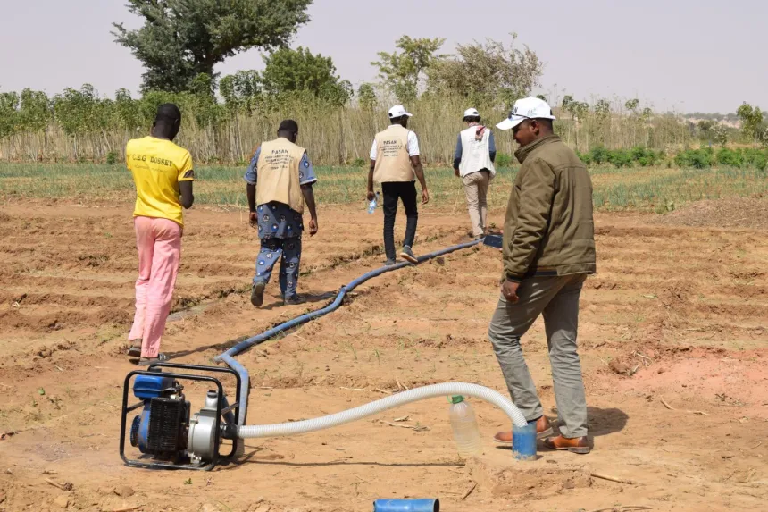 IRRIGASJON I NIGER: Ansatte i Caritas installerer vanningssystem i en åker. Foto: Caritas Niger