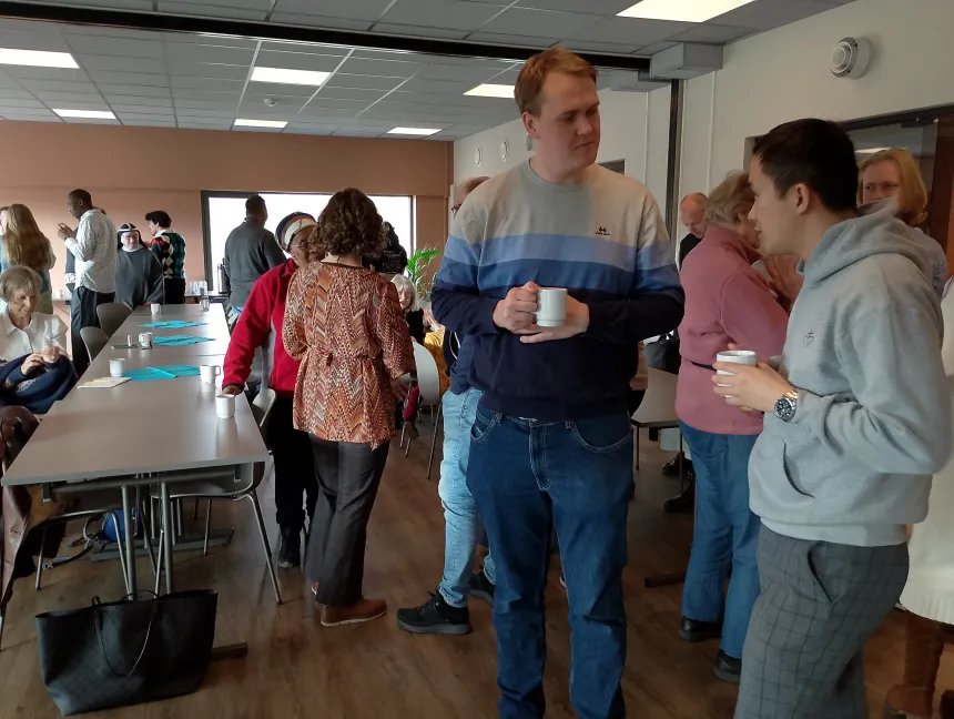 SLO AV EN PRAT: Mennesker i alle aldre var til stede på konferansen, inkludert unge voksne og representanter for Norges Unge Katolikker (NUK).
