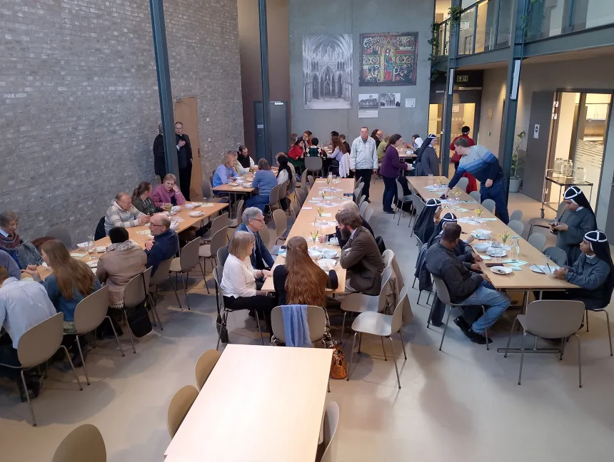 MAT FOR KROPP OG SJEL: Etter messe i domkirken var det duket for lunsj med nydelig suppe og brød.