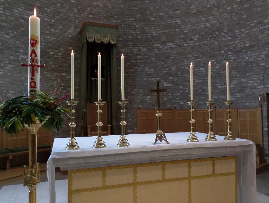 SAKRAL STEMNING: Det nye påskelyset skinner sammen med tente lys på alteret i St. Olav domkirke etter en tidebønn.