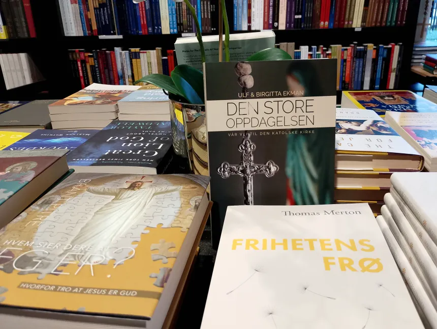 BESTSELGER: Etter foredraget var det åpent i St. Eystein bokhandel, som blant annet selger boken om Ulf og Birgitta Ekmans vei til Den katolske kirke.