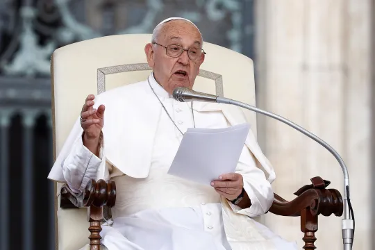 LYTT OG LÆR: Pave Frans holdt katekese for de oppmøtte på Petersplassen, onsdag 22. mai. Foto: NTB / Reuters, Guglielmo Mangiapane
