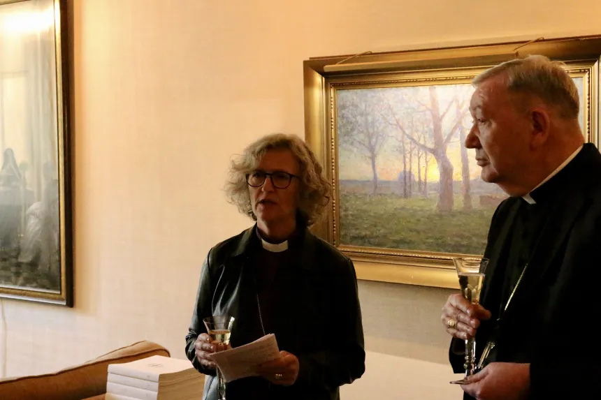 TAKKET:Under en mottagelse 2. mai for å markere kjøp/salg takket biskop Kari Veiteberg for en konstruktiv og god prosess. Den lutherske Oslo-biskopen er glad for at kirken fortsatt blir et gudshus. Foto: Mats Tande
