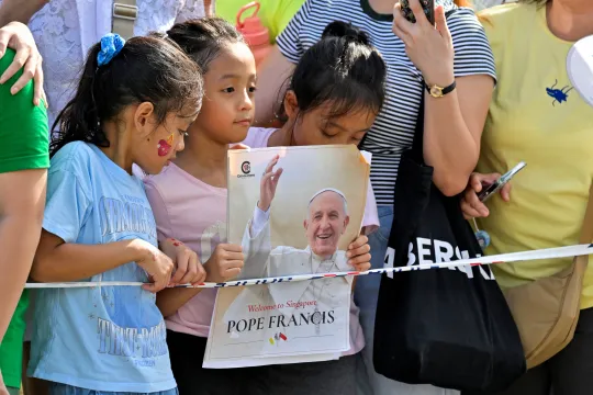 VENTER SPENT: Mange mennesker møtte opp for å hilse paven velkommen da han besøkte Singapore, 11. til 13. september 2024. Foto: NTB / Reuters, Guglielmo Mangiapane