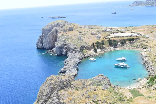 Trzecim powodem, dla którego warto przyjechać do Lindos jest urok tego miejsca. Zatoka św. Pawła widziana z góry od strony drogi wygląda jak turkusowy kamyk leżący między skałami. Przejrzystość wody i jej kolor mocno zapadają w pamięć. Przy zatoce jest mała plaża, na której można zostać trochę dłużej, np. aby podziwiać zachód słońca lub pomodlić się w tym pięknym miejscu.