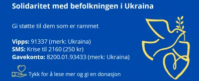 Wojna na Ukrainie niesie ze sobą wielkie ludzkie cierpienie. Setki tysięcy musiały opuścić swoje domy. Sieć Caritas na Ukrainie i w krajach sąsiednich podejmuje ogromne wysiłki humanitarne, aby zapewnić osobom poszkodowanym niezbędne wsparcie. Caritas Norwegia solidaryzuje się z tymi, którzy uciekają przed wojną na Ukrainie.